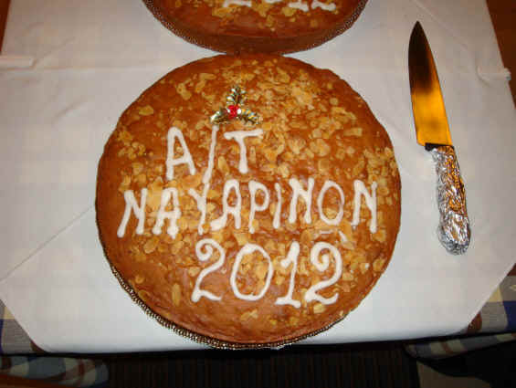 Με κομμάτια ενός τεράστιου παζελ αναμνήσεων, βαθιά χαραγμένα στη μνήμη μας, προσπαθήσαμε να συνθέσουμε και πάλι την εικόνα της ζωής μας στο πλοίο που όλοι αγαπήσαμε. Την πίτα έκοψε ο τότε ανθυποπλοίαρχος (Μηχ.) Δ. Μακρής, που μας τίμησε με την παρουσία του και τον ευχαριστούμε πολύ.