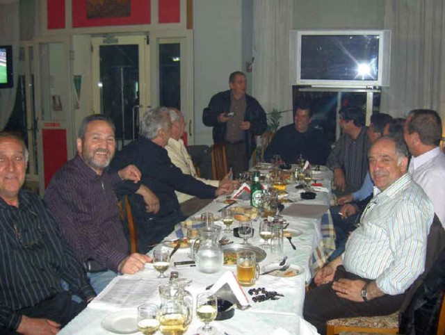 Πρώτη συνάντηση στην Αθήνα στην πιτσαρία του Γιώργου Συντρίκου. Συνολικά 16 άτομα. Εκεί θυμηθήκαμε, με τη βοήθεια στου Ανδρεα Τσακαλίδη, πολλούς και πολλά στιγιότυπα. Τι πατάτες, που τηγανίζαμε όλη νύχτα, τί εξόδους σε νησιά κλπ. Επικράτησε ενθουσιασμός και συγκίνηση...