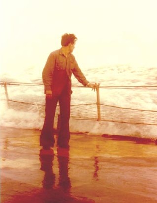Εν πλω, με τρικυμία, τη στιγμή που ξεχειλίζει το κύμα στο κατάστρωμα...