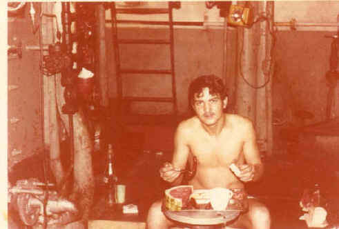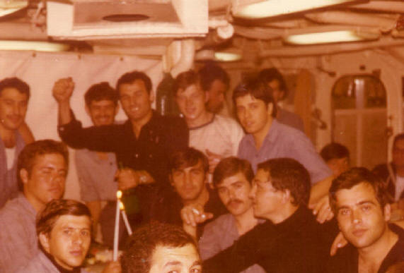 Παρέα μηχανικών στην τραπεζαρία του πλοίου (μετά την Ανάσταση)